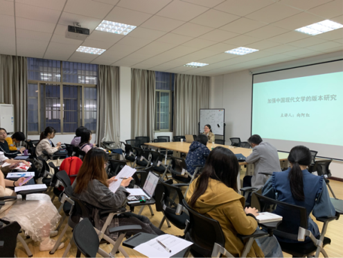 在教师分享环节,主讲人向阿红博士以“加强中国现代文学的版本研究”为题,就“中国现代文学作品的发表、刊登、出版、重印、再版过程中版本演变对书籍内容影响”等问题进行了全面深入的归整与分析。作品的版本关乎到文学批评是否精确所指、文学史叙述是否遵循叙众本原则、文学经典化是否采取善文本原则等问题。通过倾听向博士的演说,师生们对中国现代文学作品版本演变现象、修改动因、主要倾向及核心问题,以及文学批评的版本互串、文学史叙述的版本错位等问题有了较清楚的认识,增强了大家的中国现代文学研究的版本意识和异文认知观念。分享结束后,评委老师们对向博士的分享内容表示肯定,并强调了文献学对于文学研究的重要性,“文献版本研究是所有研究的基础,也是研究对象选择的前提”黄莹老师说道。