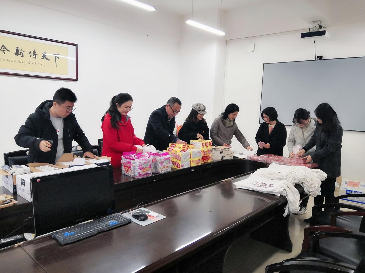 (学院各个老师在给考研学生准备考研礼包)