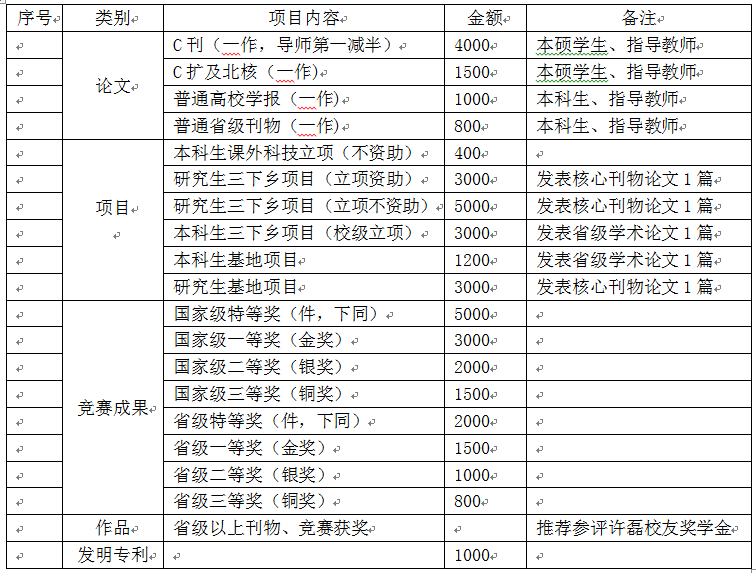 第十五条 设立“文新系学生科技基金”,对立项和结题的学生科研项目、科技成果给予资助或奖励。
