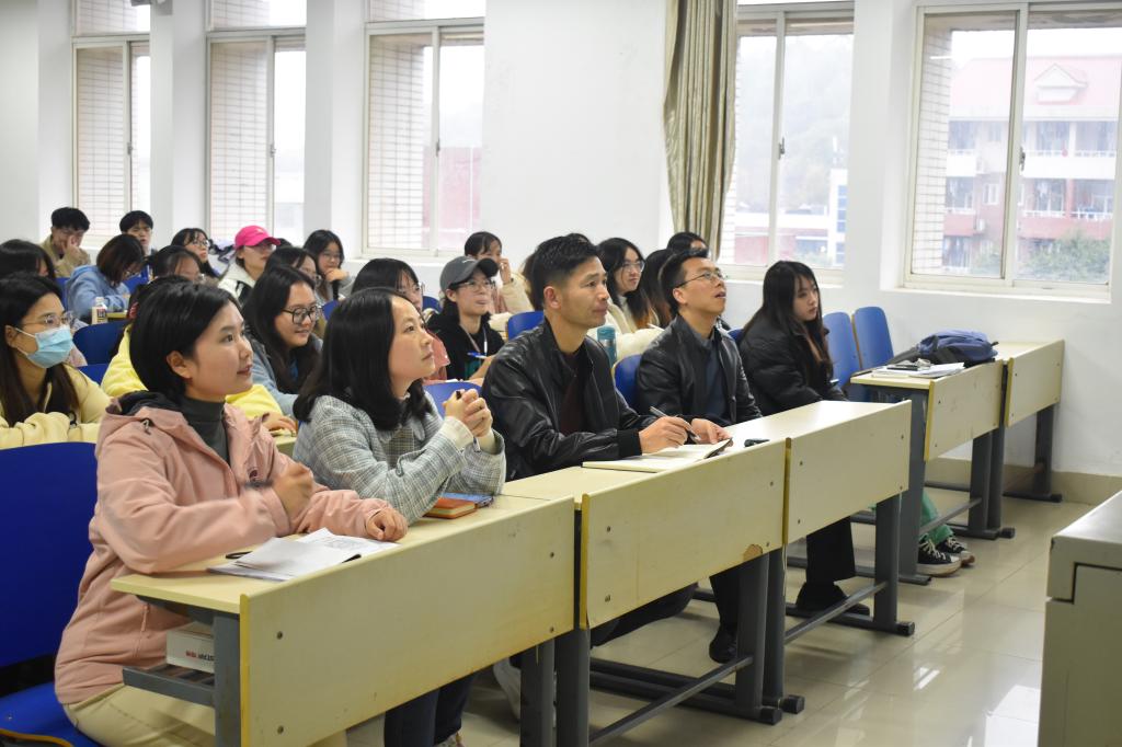 刘建民通过财经论文概述、财经论文选题、财经论文写作三部分开启了本次授课,他以“秧好一半谷,妻好一半福,题好一半文”的古语为引阐述选题的重要性,他指出选题要围绕“有意义、有兴趣、有准备、有基础、有创新”等五个方面入手。他强调论文写作基本原理相通,细致阐述了选定题目、文献搜集、草拟提纲、撰写初稿、论文修改和定稿投稿等六个完整环节的注意事项,勉励同学们在论文写作中要结合中国国情、寻找学科交叉点、做好文献搜集、敢于发现和解决问题,从而在论文写作中实现题目“养眼”,框架“养心”,内容“养脑”。刘建民通过领学党的二十大报告,引导同学们加深对党的创新理论成果的领悟和理解,勉励未来的新闻从业者们主动增强政治素养,用手中的笔书写时代华章。