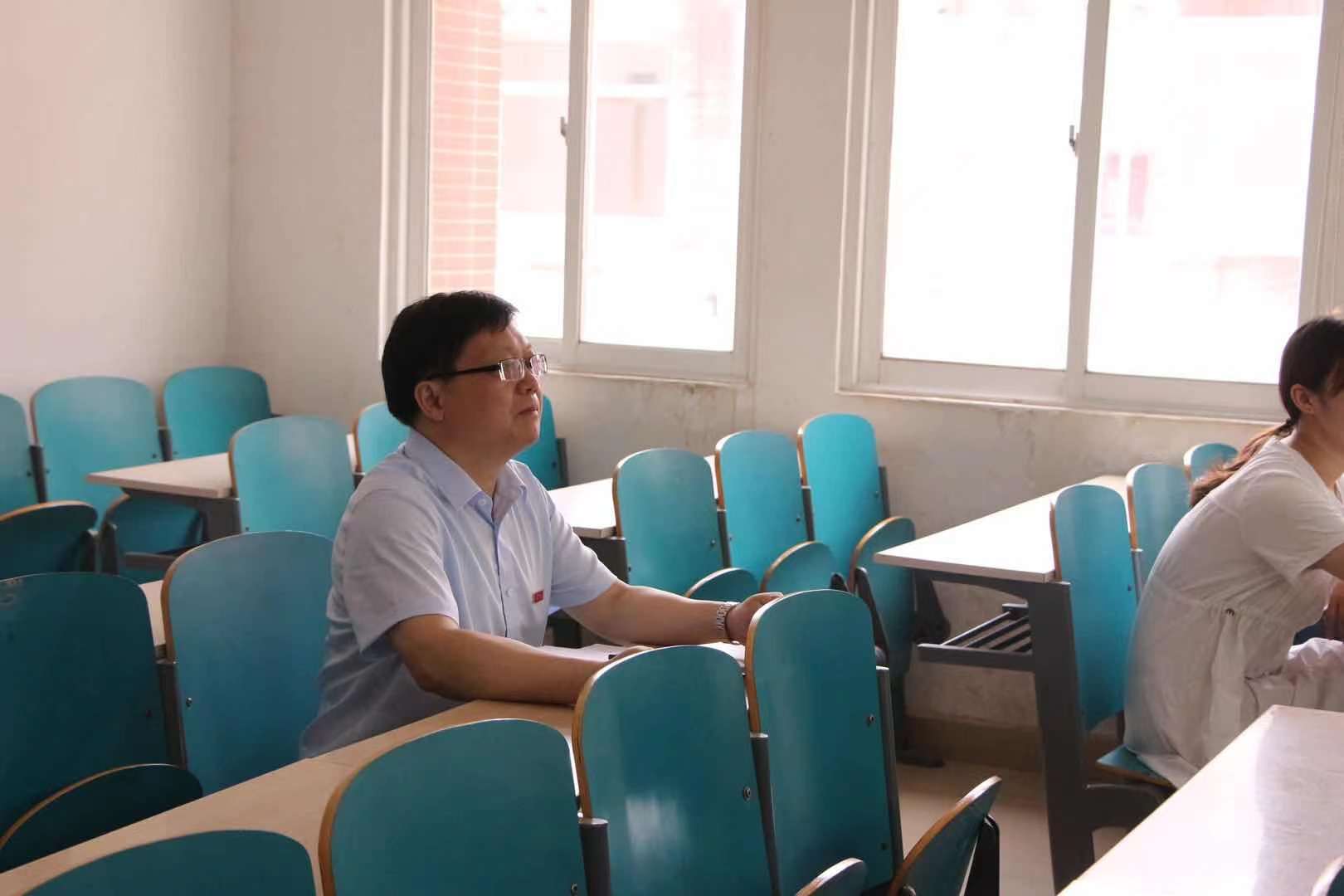 与学生的交流结束后,刘建民深入课堂听课并与授课教师戴钰进行交流,他对戴钰认真的教学态度、饱满的工作热情和良好的教学水平给予了肯定,并对改进课堂教学、提高教学质量提出了希望和要求。