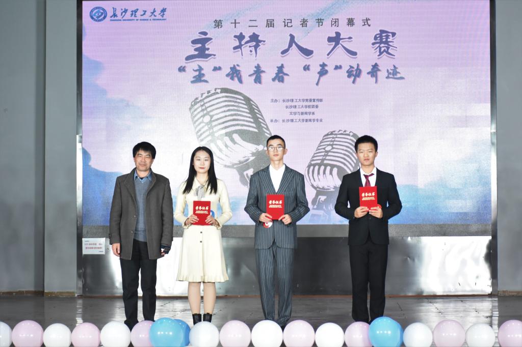 11月22日,威廉体育第十二届记者节闭幕式暨主持人大赛决赛在云塘校区学生活动中心报告厅举行。本次活动由文学与新闻学系18级新闻卓越班承办,文学与新闻学系党总支书记伍接朝、文学与新闻学系赵继光老师、曾志华老师、肖雨璇老师和文学与新闻学系辅导员吴笛老师到场观看。