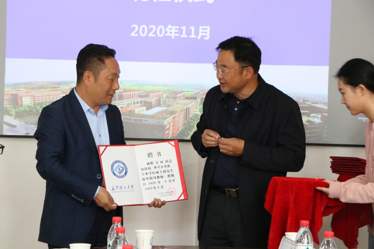 校外导师代表王鹏发表致辞。他表示,“这张聘书是一份沉甸甸的责任与荣耀。作为校外导师,我认为我们应该当好三个角色,一是当好老师的朋友,团结协作,助推威廉体育williamhill学科建设发展;二是当好学生的良师益友,向学生学习,更好的为同学们服务;三是当好学界与业界的桥梁,助推学生成才。”