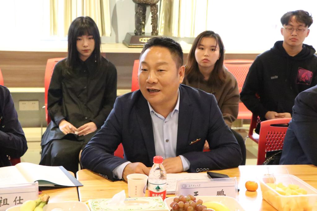 座谈会上,周云鹏为大家介绍各位校外导师。同学们热烈欢迎各位导师的到来,并向导师们送花表达诚挚的感谢。