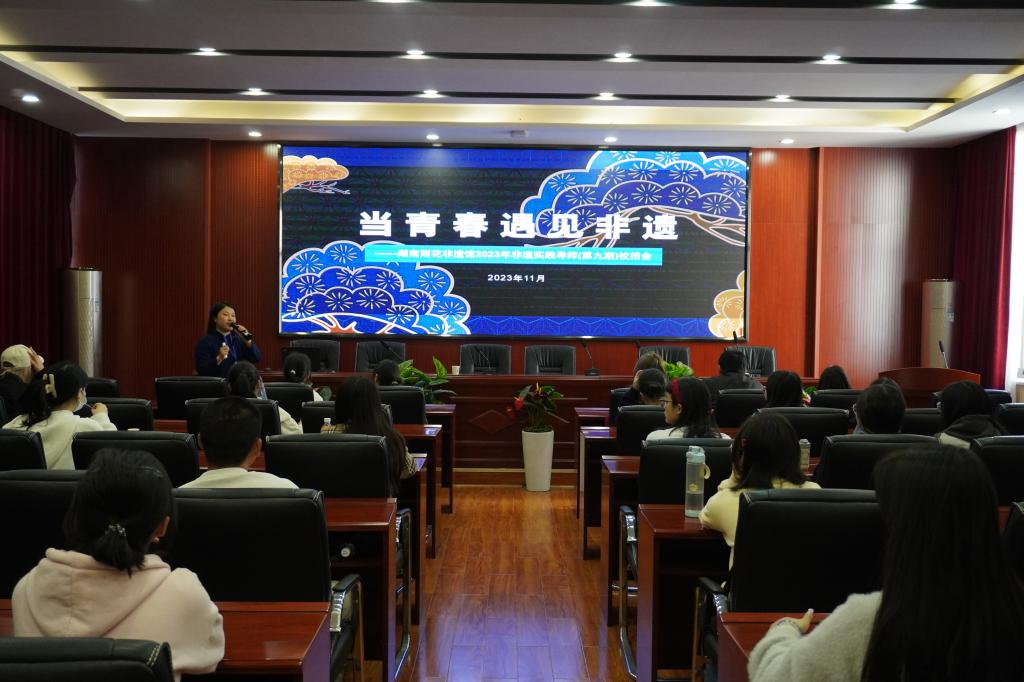 11月21日,文新学院邀请湖南雨花非遗馆在九教218学院学术报告厅举行非遗导师专场招募宣讲会,学院60余名学生参加。