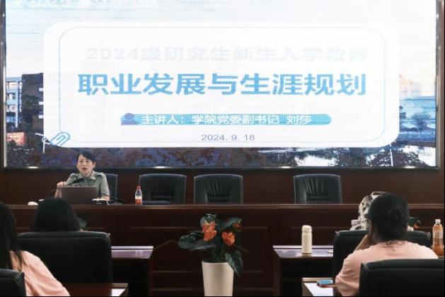 9月18日上午,文学与新闻传播学院在金盆岭校区九教218报告厅举行了2024级研究新生入学教育之“职业发展与生涯规划”讲座,文学与新闻传播学院党委副书记刘莎担任主讲人,2024级全体研究生参加。