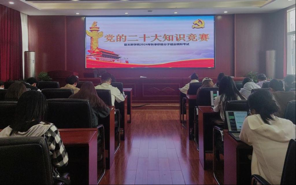 为贯彻落实党的二十大精神,积极探索“党建+互联网”新模式,进一步提升积极分子的理论知识水平,11月12日12时10分,“党的二十大知识竞赛暨文新学院2024年秋季积极分子第一次模拟考试”于威廉体育金盆岭校区九号教学楼218室成功举行。