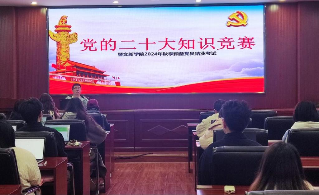 为贯彻落实党的二十大精神,积极探索“党建+互联网”新模式,进一步提升预备党员的理论知识水平,11月20日12时15分,“党的二十大知识竞赛暨文新学院2024年秋季预备党员结业考试”于威廉体育金盆岭校区九号教学楼218室成功举行。