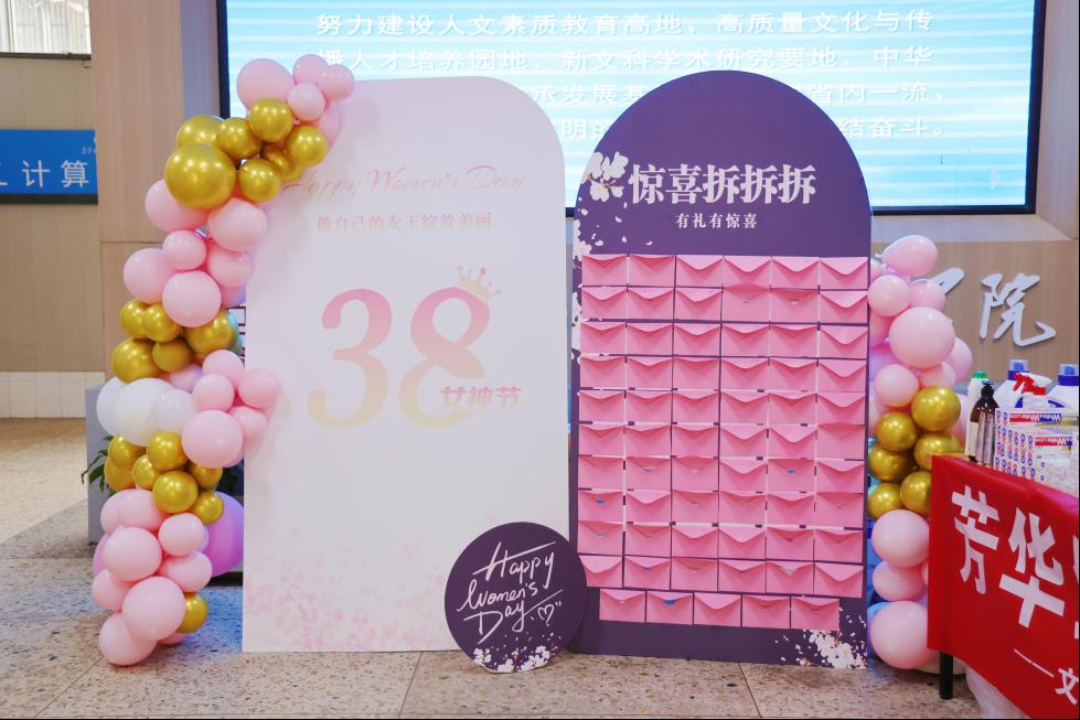 为庆祝“三八”妇女节、感谢老师们对教学工作的辛勤付出,我院于2025年3月4日在文新学院大厅开展了“芳华绽放 趣猜谜语”的趣味感恩活动,老师们通过猜谜语兑换奖品,现场气氛热烈,充满欢声笑语。