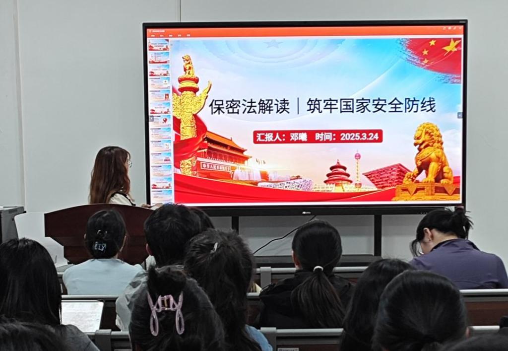 讲好“一课”,夯实理论基础。新闻学研究生党支部邓曦同志以“保密法解读:筑牢国家安全防线”为题展开讲党课,强调了保密工作在维护国家安全中的关键作用,并阐述了可能存在的泄密风险以及相应的防范措施。中国语言文学研究生党支部杨婧同志表示,这次党课学习让我们意识到了每个人都需要增强自己的保密意识,严守国家的秘密、维护国家安全。