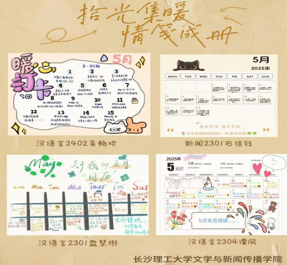 为帮助同学们缓解学习压力、感受生活的幸福瞬间,文新学院举办第二十二届“525”系列活动之“拾光集暖,情笺成册”主题的线上日历打卡活动。