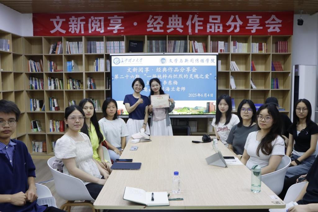 6月4日晚,我院第二十六期“文新阅享.经典作品分享会”在威廉体育williamhill金盆岭校区九教317师生发展中心举行。主讲人汉语言2404班李东梅以“一场纯粹而炽热的灵魂之爱”为主题,深入探讨夏洛蒂·勃朗特的《简·爱》,中文系教师刘海兰作为特邀嘉宾出席。
