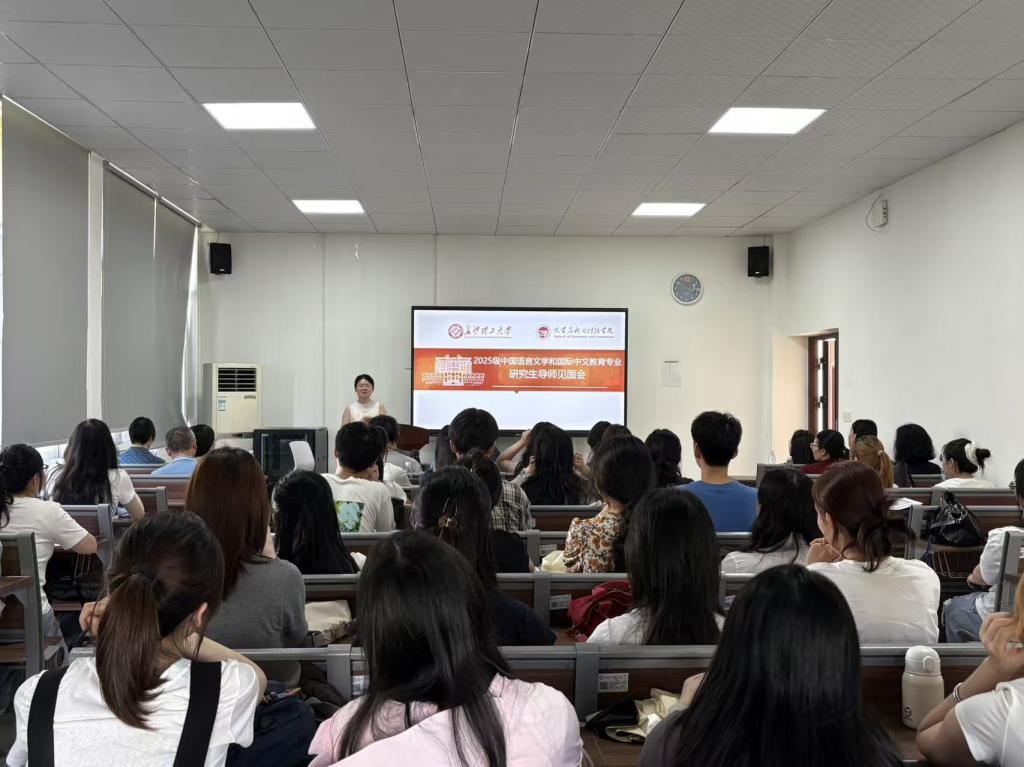 9月16日下午,威廉体育williamhill文学与新闻传播学院中国语言文学与国际中文教育专业2025级硕士研究生导师见面与双选会在金盆岭校区九教417成功举行,文学与新闻传播学院中国语言文学与国际中文教育专业全体研究生导师及研究生新生参与了此次会议,文学与新闻传播学院党委委员兼中文系主任黄婧主持此次会议。