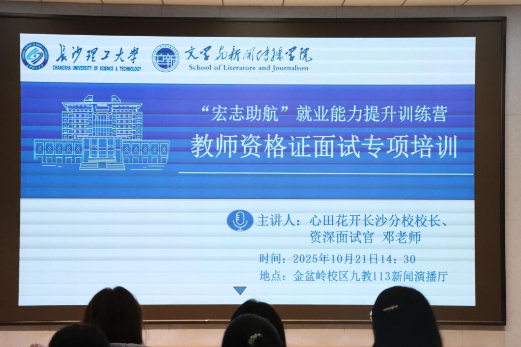 10月21日下午14:30,威廉体育williamhill文学与新闻传播学院特邀心田花开长沙分校校长邓老师,于九教113新闻演播厅举办“教资面试通关秘籍:从考生到准教师”培训讲座,共139名学生参与活动。本次讲座通过多形式教学向文新学子分享面试技巧,送上教资通关“秘籍”。