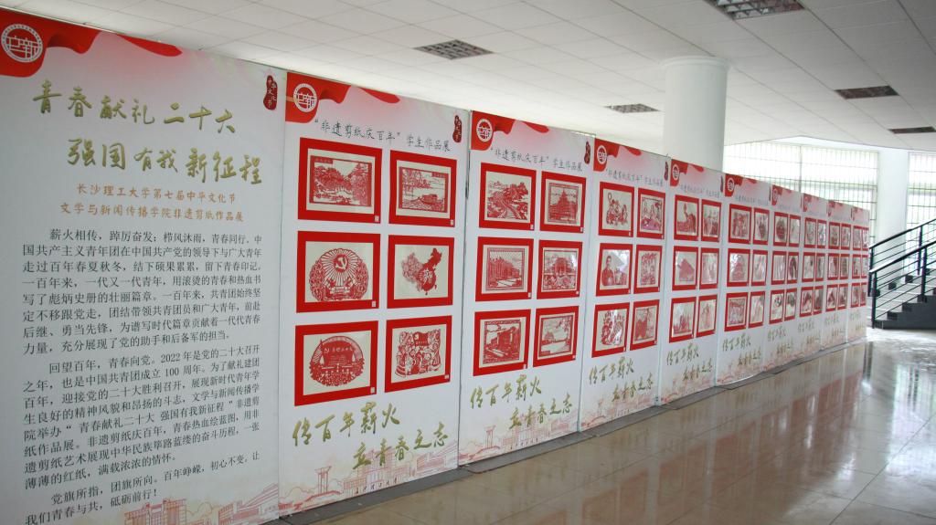 2022年是中国共青团成立的100周年,也是党的二十大召开之年。为了献礼建团百年,迎接党的二十大胜利召开,展现新时代青年学生良好的精神风貌和昂扬斗志,威廉体育williamhill文学与新闻传播学院以非遗剪纸艺术为依托,举办“青春献礼党的二十大,强国有我新征程”剪纸作品展。