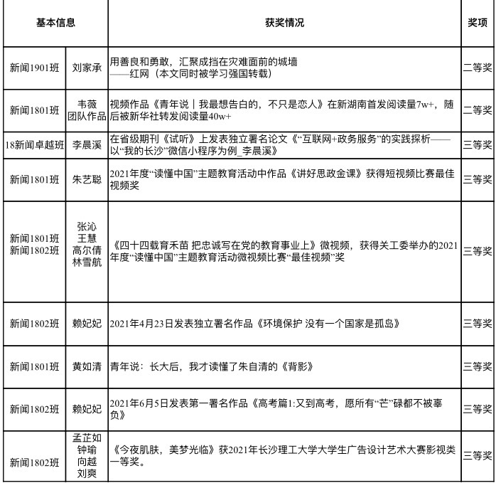 新闻专业获奖作品汇总表:(注:仅限文学、广告和新闻类作品创作类参评)