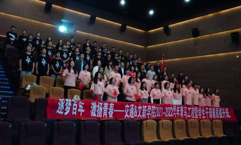 为传承红色基因,提升学生干部素质,10月19日晚,威廉体育williamhill文新学院与交通学院联合开展2021-2022学年青马工程暨学生干部素质提升班观影活动,在万达影城集体观看红色影片《长津湖》,我院党委副书记刘莎、交通学院党委副书记涂道勇出席活动,师生共计100余人参加。