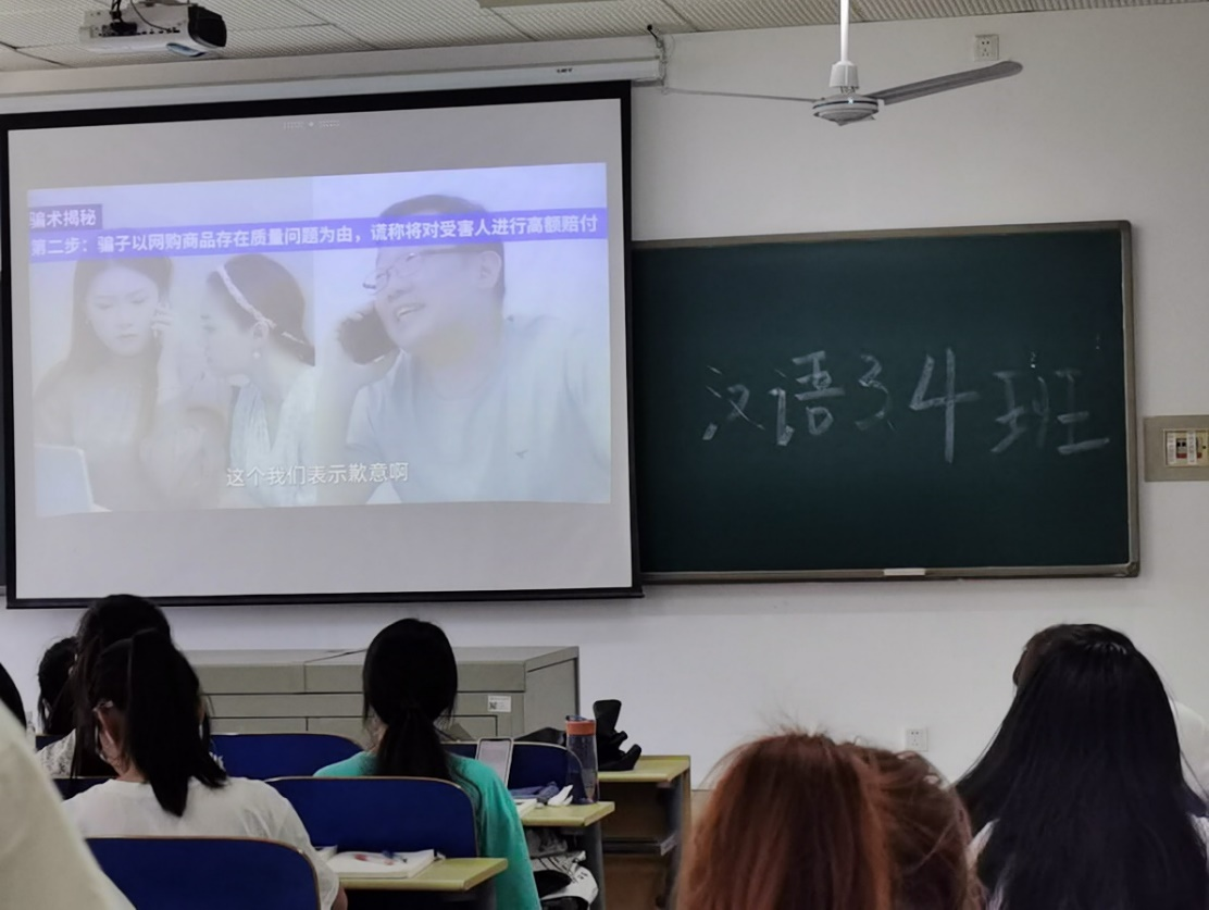 各年级各班在班会中组织观看了由长沙市公安局制作的反诈系列情景剧《星城无诈》,其中新闻2102班肖佳宜同学在观影后发表感想:“其实诈骗无处不在,看似遥远其实与我们息息相关。诈骗在学校也是普遍存在的。特别是每年大一新生来校之际,此时诈骗分子便会出来“觅食”,主要以大一新生为目标,利用他们对大学的不熟悉、对大学美好的憧憬以及他们的善良来骗取新生的信任,对其进行洗脑,进而诈骗成功。”