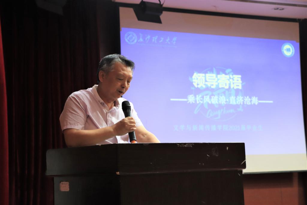 文学与新闻传播学院2021届毕业生主题教育活动于2021617晚在文科楼模拟法庭圆满落下帷幕正处级校友联络专干王静琦文学与新闻传播学院党总支书记伍接朝副书记刘莎副院长周云鹏副院长魏桃初副院长耿蕊新闻系主任赵继光以及学院各位老师和毕业生们共同参与。