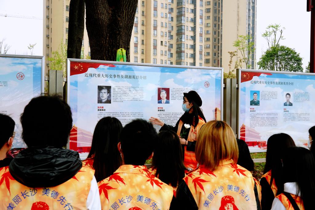 当天下午,在支部书记楚艳鸽老师的带领下,23名党员先后在烈士纪念墙和湖湘英烈事迹宣传栏处开展互助讲解,党员们将提前搜集的湖湘英烈家书或人物故事进行重温和现场演绎,宛如爱国主义教育和革命传统教育的生动课堂。在湖南英烈纪念碑处,党员们奏唱庄严的国歌重温入党初心,在《思念曲》中鞠躬敬献圣洁之菊,绕行瞻仰纪念碑,向革命先烈致以崇高的敬意。