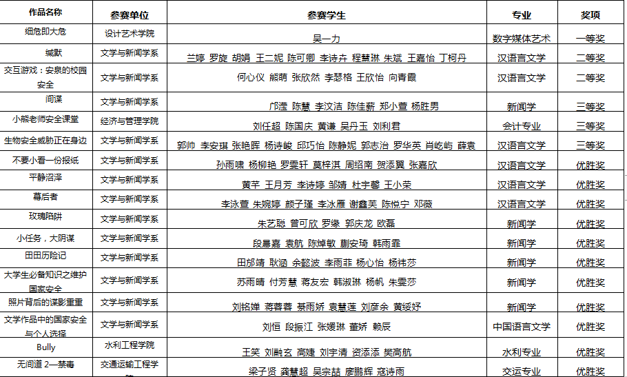 为进一步增强学生的国家安全意识,推进国家安全教育进校园、进课堂、进头脑,营造学生良好的自觉履行维护国家安全责任义务和教育的氛围,切实增强广大师生维护国家安全的意识和能力,威廉体育在全校范围内开展了国家安全教育主题微视频比赛。本次微视频活动秉承自愿参加原则,经过初赛、决赛层层选拔,作品《细危即大危》荣获校级一等奖;《缄默》、《安泉的校园安全》荣获校级二等奖;《间谍》、《小熊老师安全课堂》、《生物安全威胁正在身边》等3个作品荣获校级三等奖;《小任务、大阴谋》等11个作品荣获优胜奖。