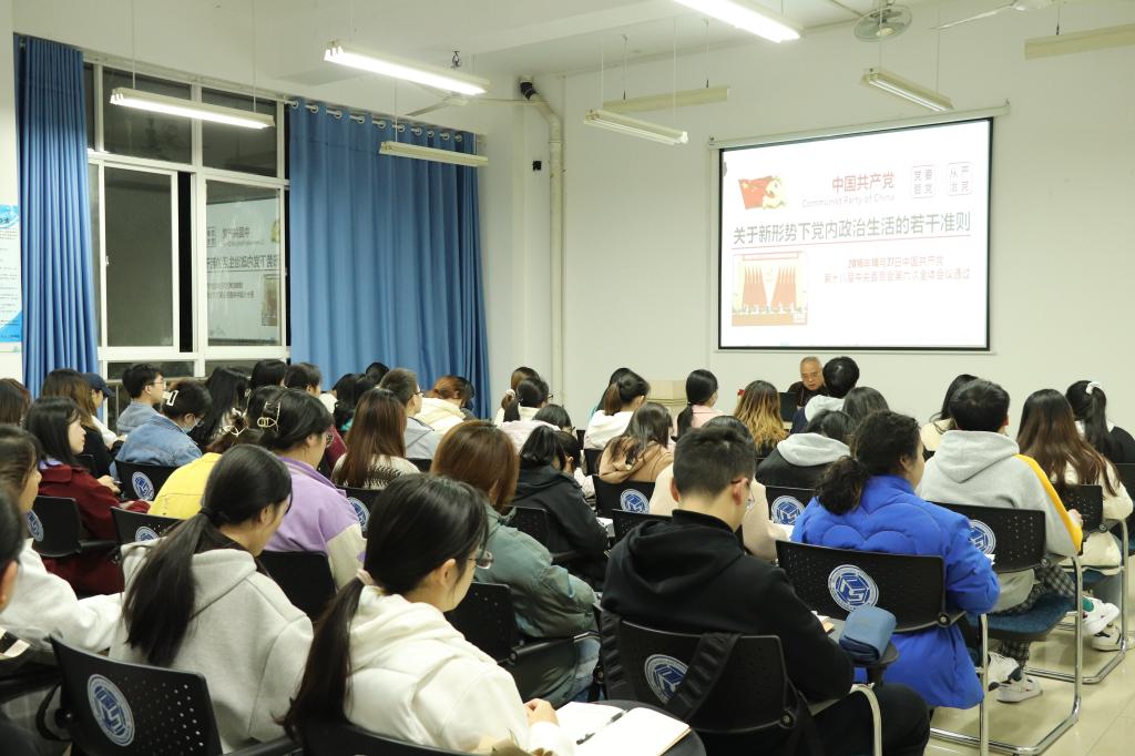 威廉体育williamhill文学与新闻传播学院第15期发展对象培训班第三次党课于11月12日18:30在工科三号楼B210教室开课。本次党课的培训主题为“关于新形势下党内政治生活的若干准则”,由化学与化工学院党建组织员邓豫老师授课。