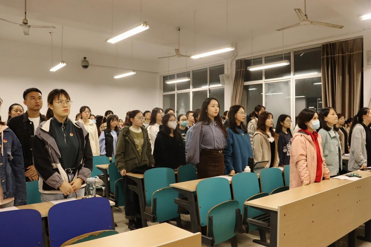 11月4日晚6时30分,文学与新闻传播学院2021年下半年党校培训班开班仪式在工科三号楼A307举行。文新学院党委副书记、副院长刘莎,党建辅导员楚艳鸽出席此次活动,第38期入党积极分子15发展对象学员80余人参加,仪式由袁巧主持。