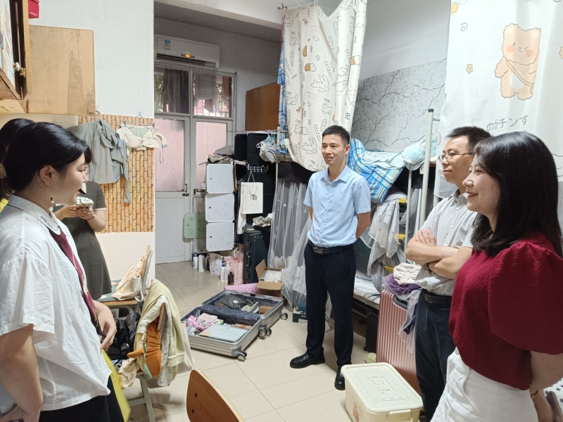 在至诚轩和弘毅轩宿舍,学院领导、老师与毕业生们亲切交谈,详细了解他们的毕业去向、未来规划、以及离校准备情况等等,并叮嘱他们在离校途中务必注意安全,确保平安到家。针对目前暂未就业的学生,学院领导老师也鼓励他们要坚定信心、把握机遇,正确认识自身情况和就业形势,争取早日找到适合自己的工作。