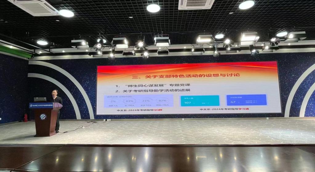 黄莹还汇报了支部近期工作及今后特色工作设想。支部于3月组织中文系教师搭建考研指导QQ群和同步更新的学习通平台,用于考研指导一对一交流。这是中文教工党支部将支部活动与教学育人相结合的全新举措,全体支部党员积极参与。目前两平台均运行平稳,学生反馈良好。之后,支部还将联合学生党支部,邀请副院长周云鹏为师生讲授“师生同心谋发展”专题党课,针对师生缺乏日常交流平台和机会等问题,开展“中文圆桌派”师生对谈活动,发挥好桥梁纽带作用,提升中文教工党支部“以学促行”的工作实绩。