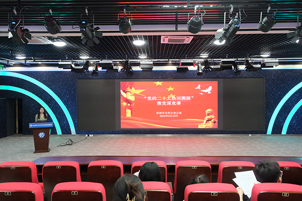 微党课竞赛紧紧围绕党的二十大精神和热词展开,在各个分赛现场,学生党员以饱满的热情,围绕“全过程人民民主”、“乡村振兴”、“新发展格局”等党的二十大报告中的热词,从不同领域和视角讲述了在学习宣传贯彻党的二十大精神过程中的所思、所感、所悟。其中21级研究生李双翼主要从含义、特征、启示三个方面来解码“中国式现代化”这一高频热词,明确了青年在现代化进程中要担起时代之重任,成为中国式现代化的先行探索者、重要推进者和关键主力军。22级研究生向雅妮主要从构建新发展格局的发展背景、核心目标、构成要素来解析“新发展格局”这一热词,提出必须完整、准确、全面贯彻新发展理念,坚持社会主义市场经济改革方向,坚持高水平对外开放,加快构建以国内大循环为主体、国内国际双循环相互促进的新发展格局。大家在讲述中,还结合了文新学院的学科专业特点,展示出文新学子在新征程上矢志奋斗的决心。汉语言文学研究生党支部书记吴笛对各位选手的表现和讲解内容进行了一一点评,并肯定了微党课竞赛对于深刻理解党的最新理论政策的意义和价值,希望支部成员今后能将理论学习与专业知识相结合、与社会实践相结合,真正做到学有所用、学有所得。