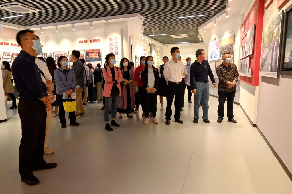 理论学习结束之后,全院教职工参观了“三全育人”教育基地,进行体验式学习。在讲解员的引导下,老师们听讲解、看图文、赏影片,通过“国之大者”“材之茂者”“师之贤者”“行之实者”四个篇章,重温了党的教育方针,回顾了党领导教育事业的历史进程,全方位了解了学校与时代同发展、与人民齐奋进,始终牢记“为党育人、为国育才”初心使命所取得的丰硕育人成果。