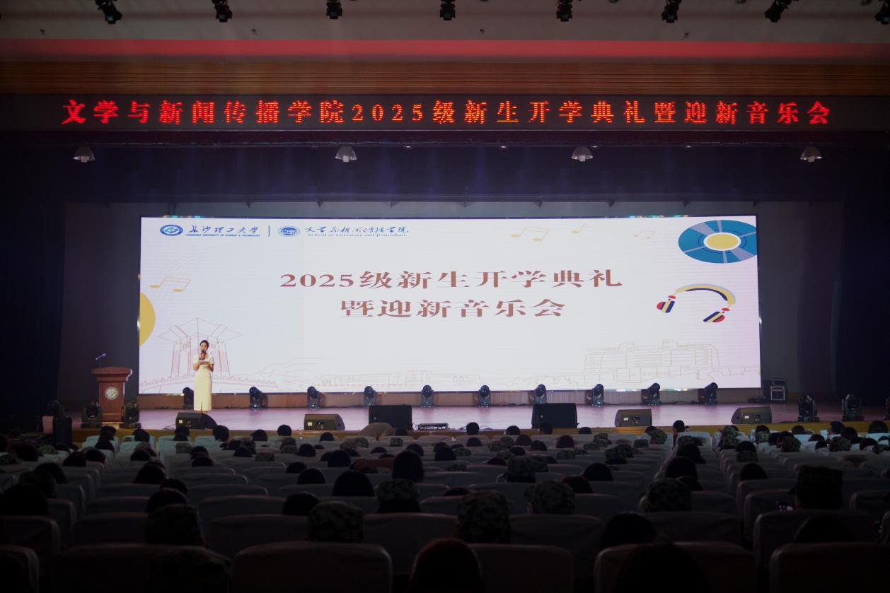2025年9月28日晚,威廉体育williamhill文学与新闻传播学院在金盆岭校区5教大礼堂举行2025级新生开学典礼暨迎新音乐会。全体院领导、系主任、系副主任、支部书记、全体辅导员、2025级本科班级班主任以及下班党员下班团干出席活动。文新25级研究生张雨嫣、新媒体2501班王佳妮以及新闻2502班粟嘉淇担任主持。