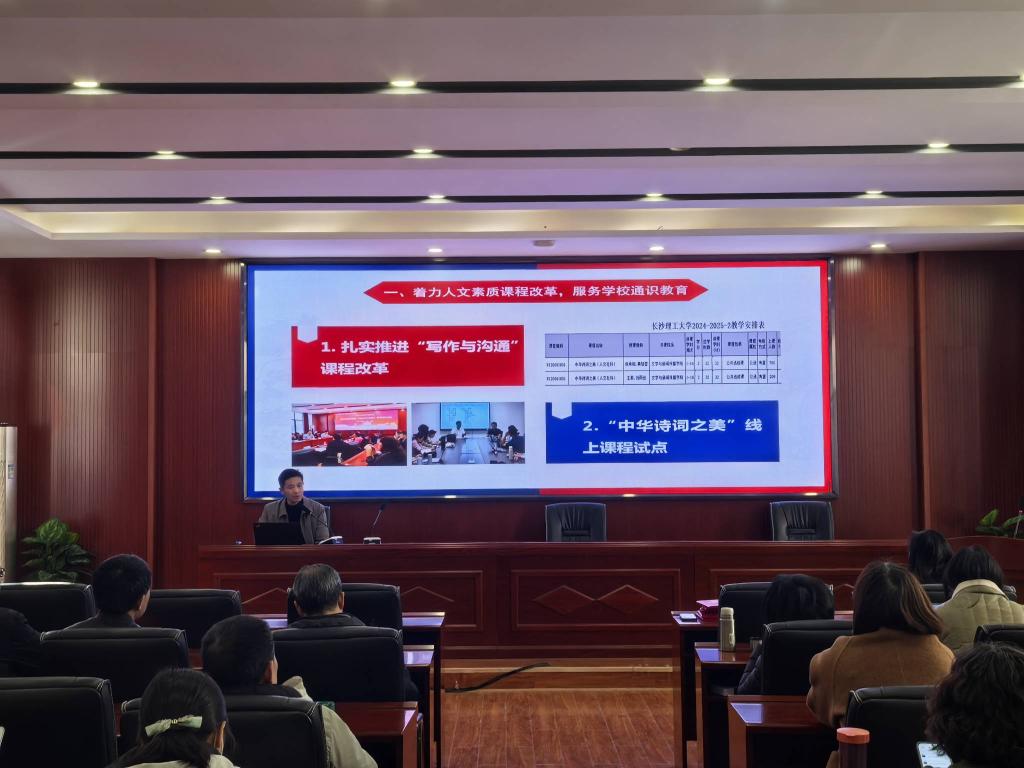 院长刘建新做2024年度学院工作报告,全面总结了学院在人才培养、学科建设、科学研究、师资队伍建设、学科竞赛等方面取得的成绩,以及年度重点工作任务完成情况。他指出,过去的一年中,学院进一步加强党建引领,优化内部治理,提高人才培养质量,塑强学科、人才、科研等核心竞争力,在学位点建设、师生典型培育、教学平台建设等方面取得突破,全力推动了学院的高质量发展。学院扎实推进人文素质课程“写作与沟通”改革;组织学生读书会,推进“四个十”工程;获批国际中文教育和戏剧与影视两个硕士点,学位点布局进一步优化;国家社科基金、省部级课题立项数及智库成果继续呈现良好发展势头;成功举办学院办学四十周年系列活动,大力凝聚了推动学院高质量发展的共识和力量。他提出了学院下阶段发展的思路与目标,强调要提高站位,进一步推进人文素质通识课程改革,服务学校复合型创新性人才培养;要找准定位,进一步聚焦区域文化和传媒产业,赋能地方经济社会发展;要立足本位,进一步凝练专业特色,加强学科建设,扩大学科专业影响力。