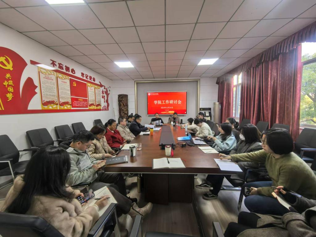 1231日下午,学院在院会议室召开学院工作研讨会,深入思考当前学院发展面临的重点难点问题,系统谋划2025年学院改革的战略举措和重大任务。学院党政班子成员,各系(室、站、中心)负责人、各教工党支部书记参加会议。会议由院长刘建新主持。