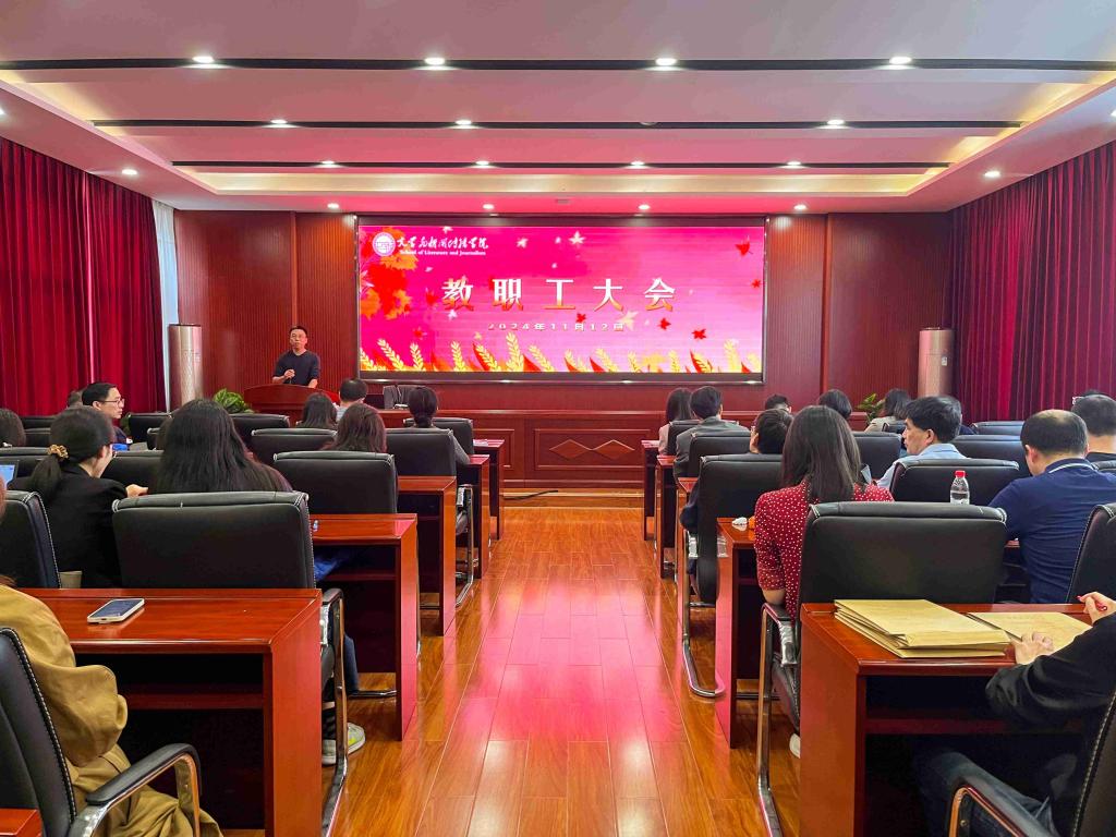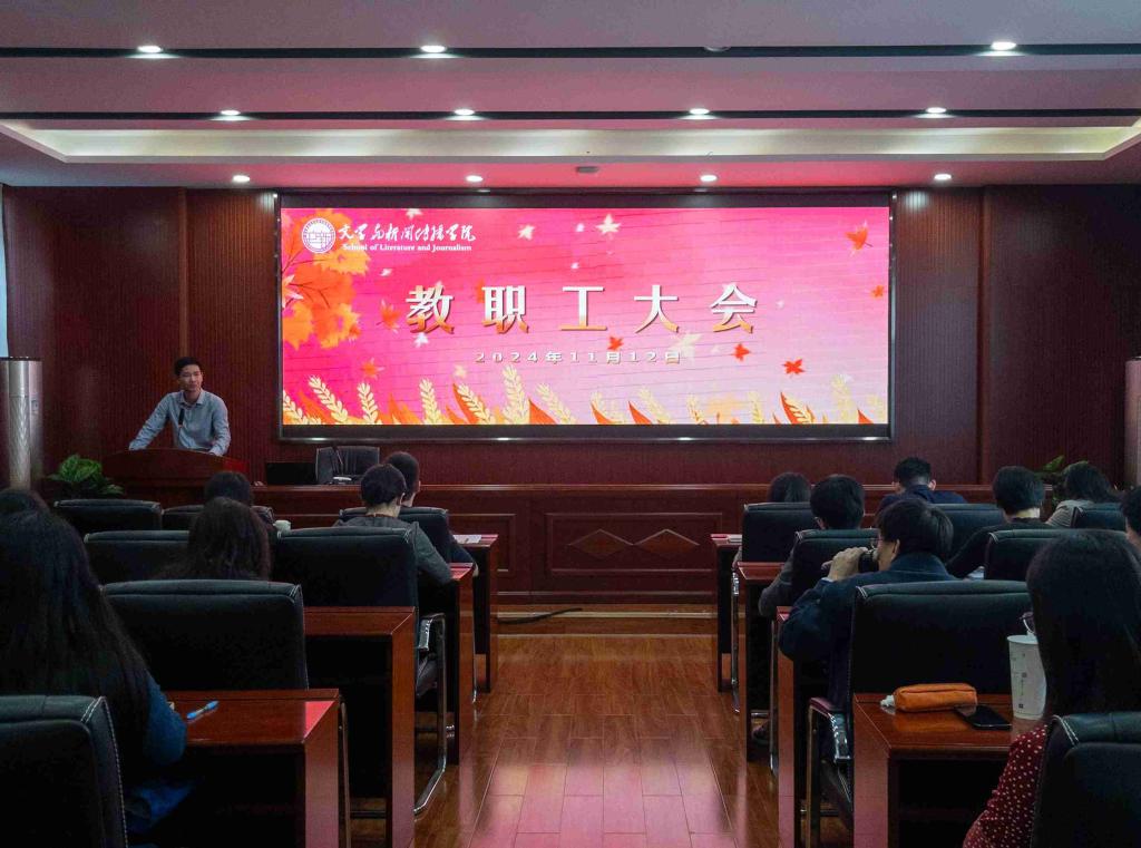11月12日下午,我院在院学术报告厅召开教职工大会。会议由党委书记陈仁凯主持,全体教职工参会。
