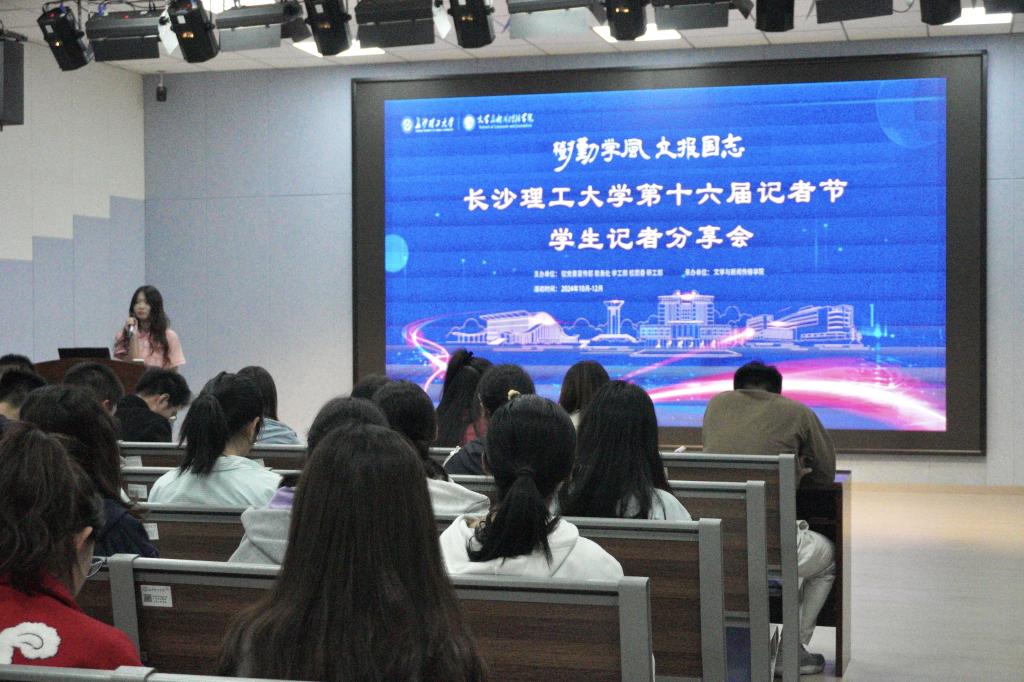 2024年11月5日,由长沙理工大学党委宣传部、教务处、学工部、校团委、研工部主办,我院承办的第十六届记者节学生记者分享会在威廉体育williamhill金盆岭校区九教113新闻演播厅举行。本次活动高举“树勤学风 立报国志”的旗帜,旨在促进威廉体育新闻人才的交流互鉴,提升学生记者的专业素养。