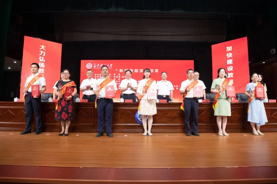 我院多名教师获得表彰。曾志华老师荣获教学贡献奖并上台领奖。