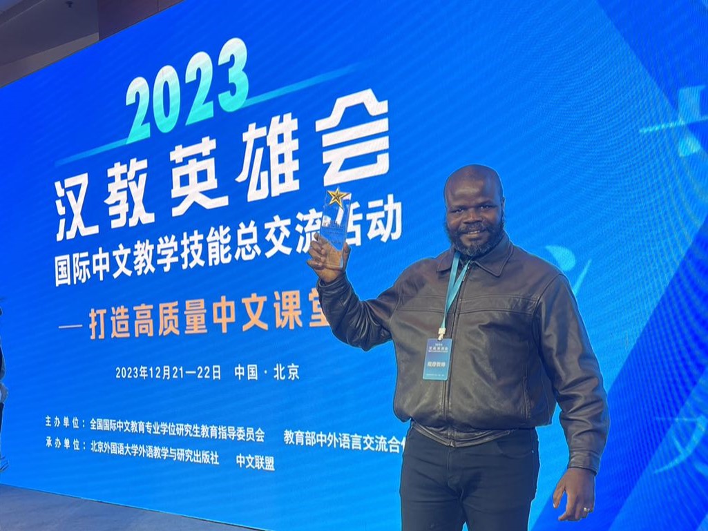 2023年12月21-22日,由全国汉语国际教育专业学位研究生教育指导委员会、教育部中外语言交流合作中心联合主办的2023“汉教英雄会”国际中文教学技能总交流活动在北京举行,由利比里亚大学孔子学院中外方教师组成的威廉体育williamhill代表队赴京与会交流,一路过关斩将,并最终获得“教学风采团体”奖。