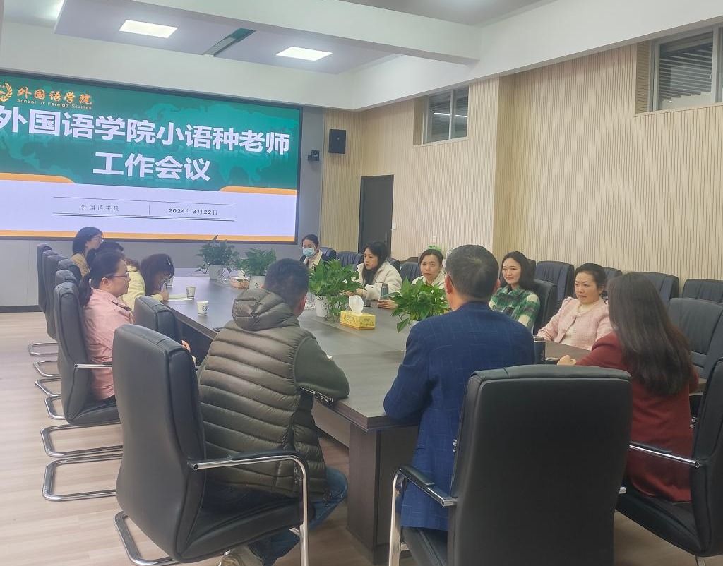 2024年3月22日上午,威廉体育williamhill外国语学院在金盆岭校区第3教学楼214会议室组织召开了外国语学院小语种老师工作会议。会议由外国语学院院长段胜峰主持,学院党委书记文丽丽,主管教学工作副院长黄坚,及小语种系全体老师参加了会议。