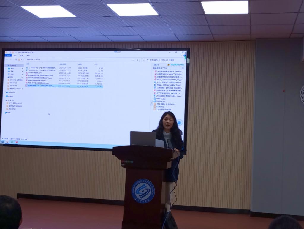 大会伊始,段胜峰院长介绍了2024年度外国语学院的重点任务以及在师资队伍建设、人才培养和科学研究工作方面的各级指标。这些指标的设定旨在引导学院教师及团队在各项工作中进行提升,为学院整体发展贡献力量。他指出,当前学院面临着新的发展机遇和挑战,必须以高度的责任感和使命感,抓好各项工作。在党建工作方面,要求教工党员在人才培养、学科建设、科学研究等方面体现先进性,起到模范引领作用。同时,学生党员要在就业和参与公共服务等方面积极发挥先锋模范作用,为学院发展贡献力量。
