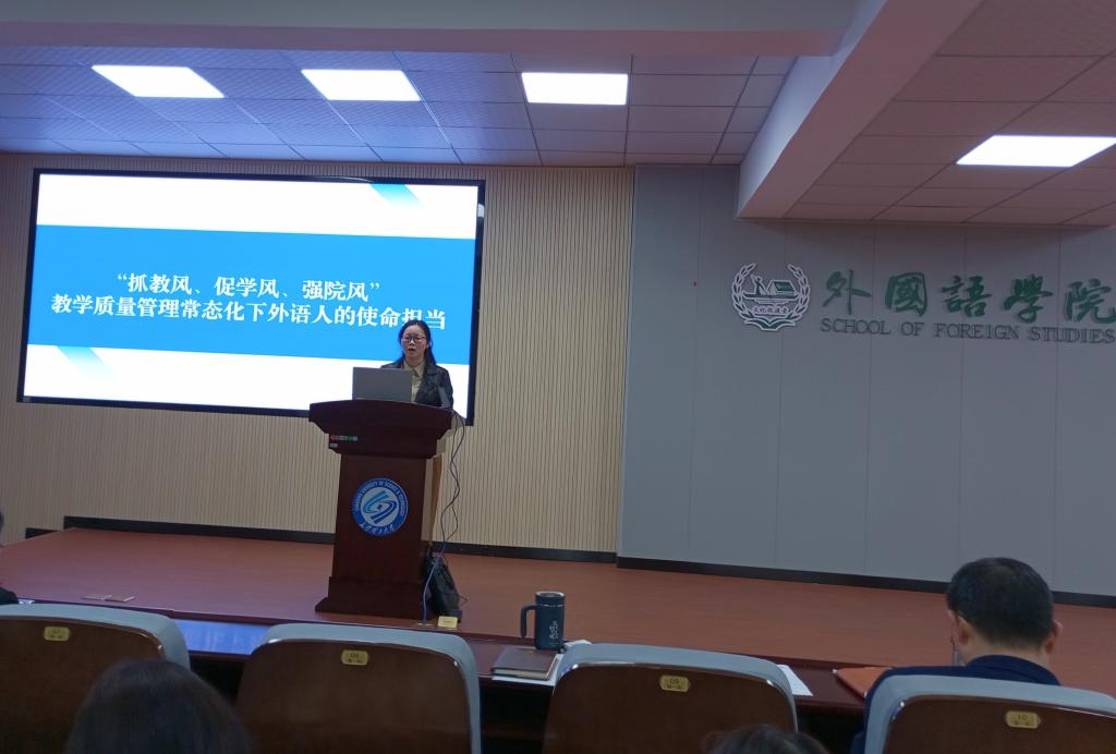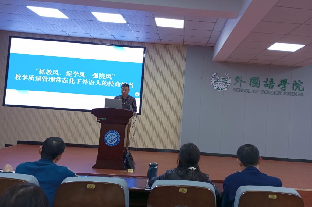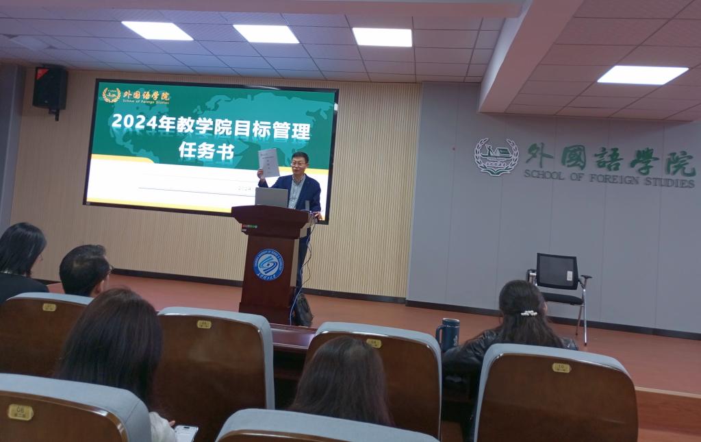 2024年4月9日下午,威廉体育williamhill外国语学院在金盆岭校区3号教学楼321报告厅召开了以“抓教风、促学风、强院风”为主题的专题大会。本次大会由外国语学院院长段胜峰主持,学院全体教职工出席。