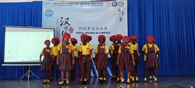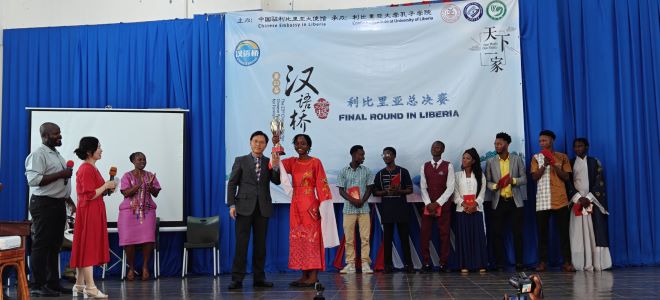 2024年5月17日,利比里亚大学孔子学院在利大国会山校区隆重举办了第23届“汉语桥”世界大学生中文比赛预选赛利比里亚赛区总决赛。中国驻利大使尹承武阁下、利比里亚教育部助理部长Nyensuah女士、利比里亚广播电台台长Faghon先生、利比里亚大学代理校长Taylor教授、中资企业和机构代表以及利大孔院师生近300人参与活动。部分孔院教学点学生和武术课堂的学员进行了暖场表演。利国多家主流电视、广播及网络媒体对此次活动进行了现场直播和新闻报道。
