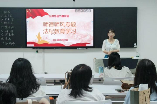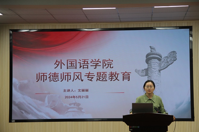 5月21日,外国语学院在三教-321会议室召开师德师风专题教育,学院党政领导班子、全体教职工参加,会议由院院长段胜峰主持。