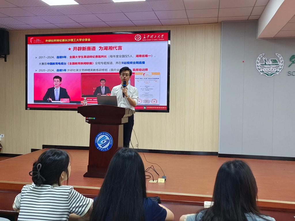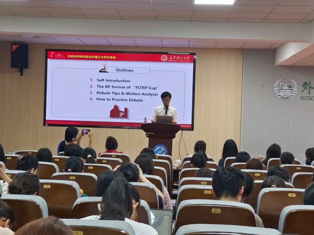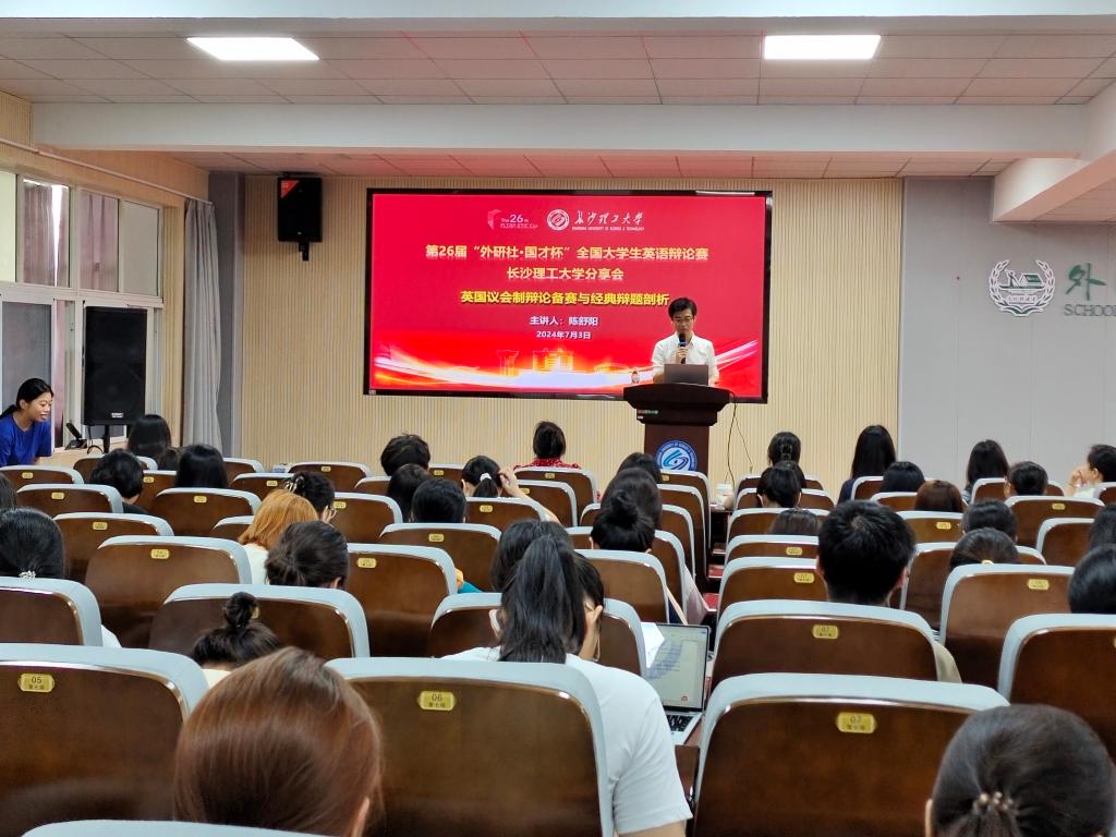 7月3日上午,外研社英文思辨教育功勋培训师、外研社辩论精英教练研修班首席培训师、全国大学生英语辩论赛裁判长、资深评委、中国外文局外文素养、CUDC总决赛裁判长,中南林业科技大学陈舒阳副教授莅临我院讲学,主题为“英国议会制辩论备赛与经典辩题剖析”。讲座由我院竞赛办主任张志武老师主持,我院部分老师以及22级、23级同学到场学习。