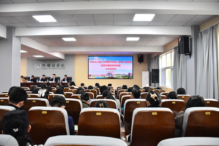 12月3日下午,学校党委第六轮第二批第二巡察组巡察外国语学院党委工作动员会在金盆岭校区三号教学楼321报告厅召开。校纪委书记、党委巡察工作领导小组副组长徐桂林就学院党委配合做好巡察工作提出明确要求,第二巡察组组长丁力作巡察工作动员讲话,学院党委书记文丽丽代表学院党委作表态发言。校纪委副书记、党委巡察工作领导小组成员方文彬出席动员会。学院院长段胜峰主持会议,第二巡察组全体成员、学院领导班子成员、学院全体教职工及退休职工代表、学生代表参加会议。
