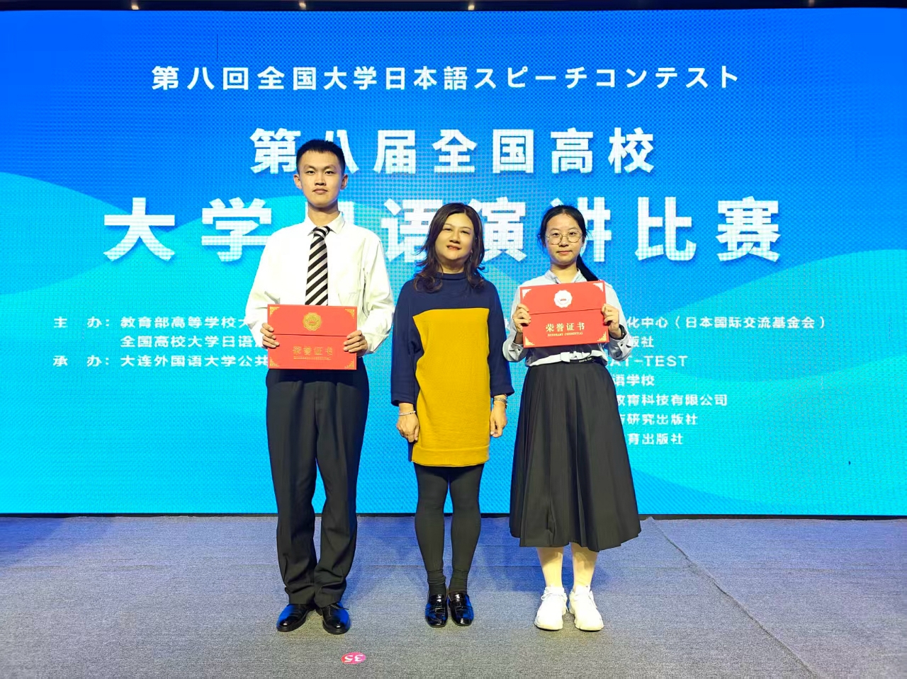 在激烈的角逐中,威廉体育学子表现出色,载誉而归。在刘晓芳、陈晓慧老师的联合指导下,城南学院周宇星同学荣获全国一等奖,经管学院彭胤维同学荣获全国二等奖。这一成绩实现了威廉体育公共日语学生在国家级日语竞赛中获奖的历史性突破,充分展现了长理学子的卓越风采与扎实功底。