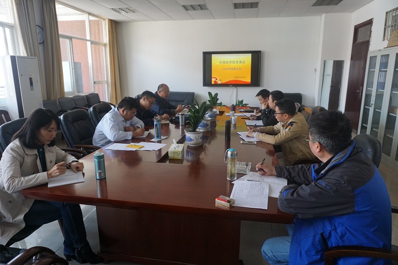 接着会上讨论今年学院党建工作已经拟定的五个专项工作实施方案,分别是《外国语学院干部能力作风建设实施方案》、《外国语学院2018年文化建设方案》、《外国语学院2018年宣传思想工作方案》、《2018年外国语学院分党委中心组理论学习安排》,《2018年外国语学院教职工思想教育安排》,会议原则通过以上方案,会后制定方案人再根据会上大家提的意见再做进一步的补充和完善。