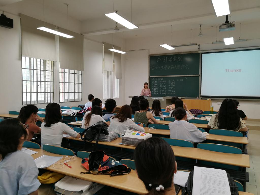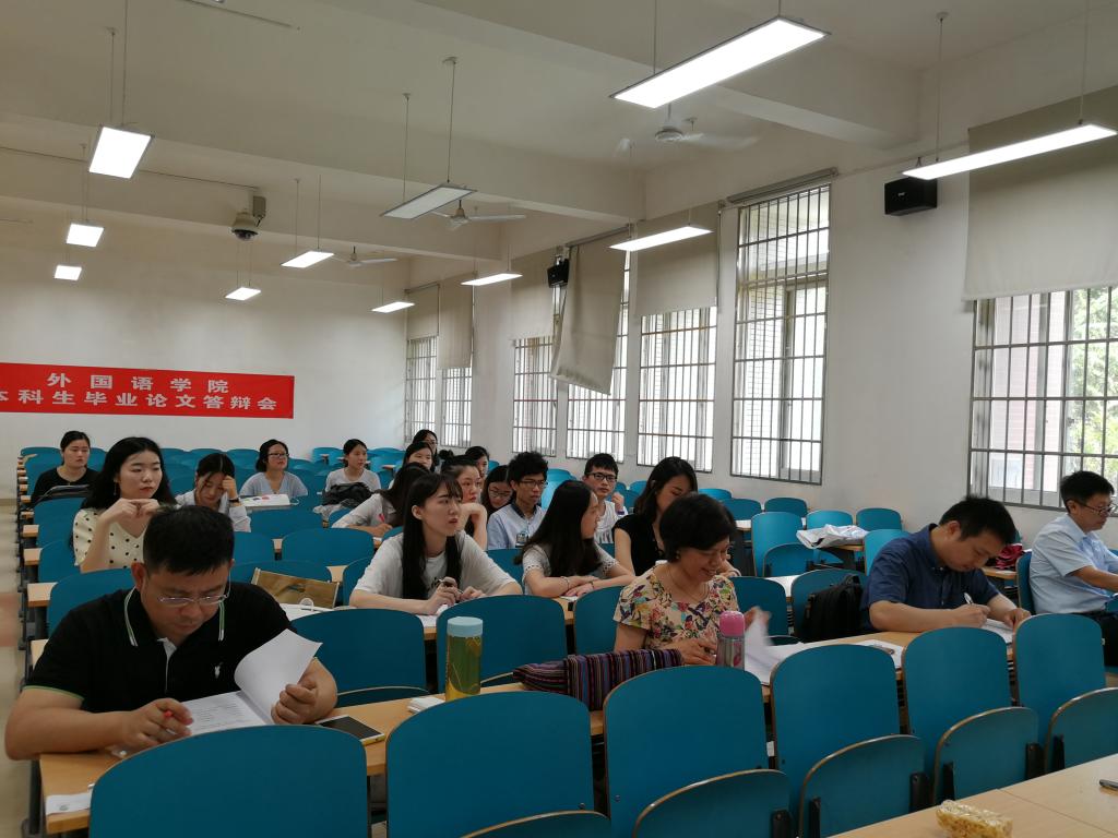 6月17日,正值端午假期期间,在云塘校区文科楼A区二楼的六间教室里,外国语学院2018届本科毕业生论文答辩工作紧张有序地进行着,此次答辩共有我院英语和翻译专业118名毕业生参加。