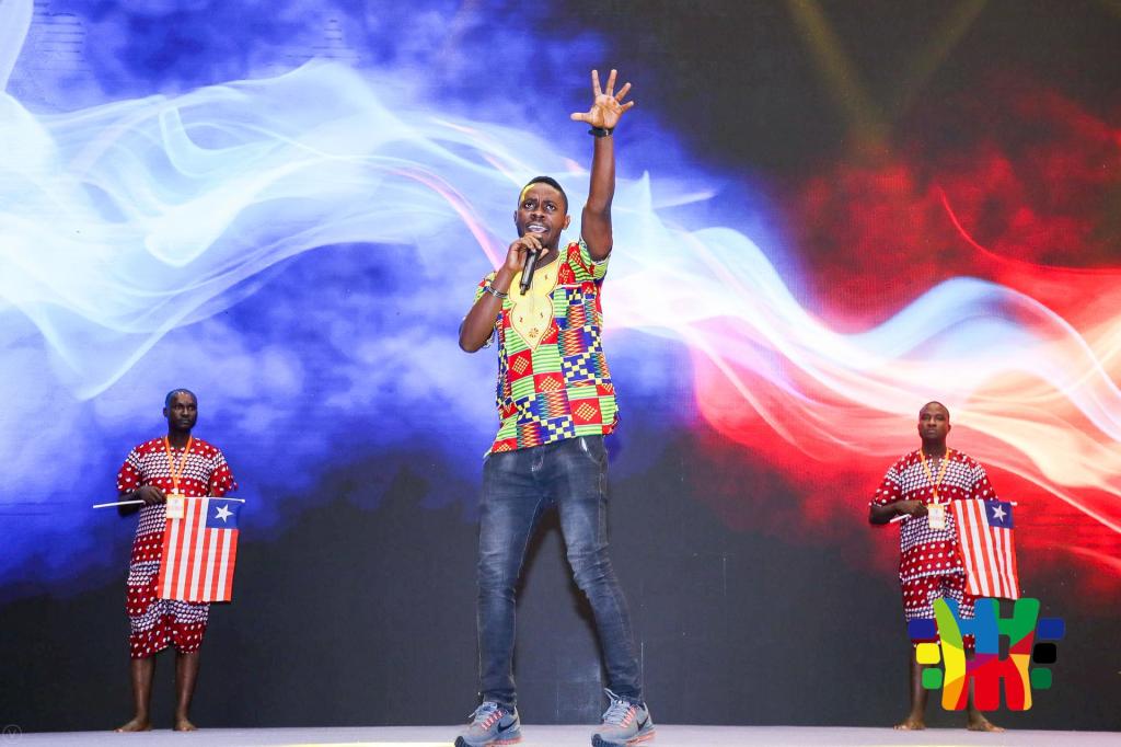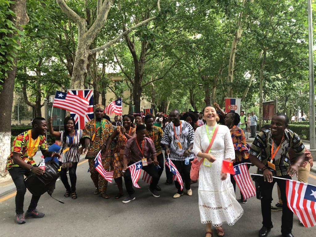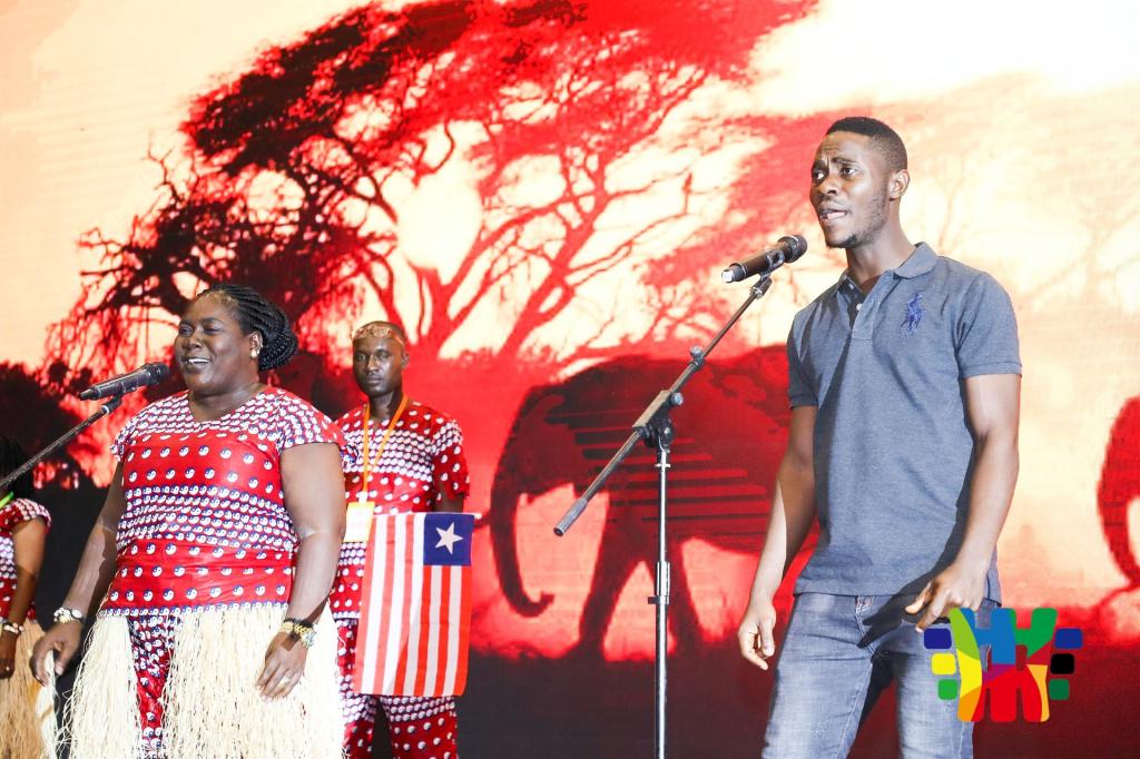 在8月22日的嘉年华文艺表演上,利大孔院的师生们集体表演了非洲舞蹈《阿沃亚》(Awoya),赢得了全场雷鸣般的掌声。伴着欢快激昂的非洲鼓点和“沙沙”(一种非洲乐器)声,利大孔院师生们在台上载歌载舞。他们的表演嗨翻了全场,使整场晚会达到了高潮。除了这个集体舞,利大孔院的乔尔和哈瓦还分别表演了歌曲 “Africa and China”和 “Let’s talk about love.”他们两人的表演经验丰富,舞台效果极佳。在众多孔院中,利比里亚孔院的节目令人瞩目。