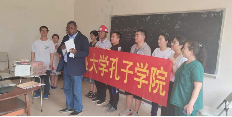 回到营地,利比里亚大学孔子学院老师在项目部会议室为中铁五局当地员工上了一堂汉语体验课。两个志愿者老师轮番上阵,教学互动过程轻松活泼,会议室里掌声爆棚。